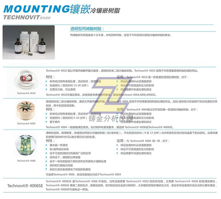 Technovit4004是賀利氏開發的一款透明冷鑲嵌樹脂,已被廣泛的應用于很多行業。對于:
