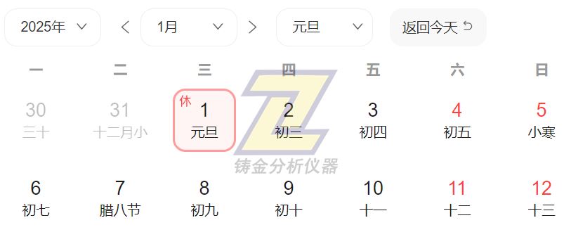 > 上海鑄金分析儀器有限公司2025元旦放假安排