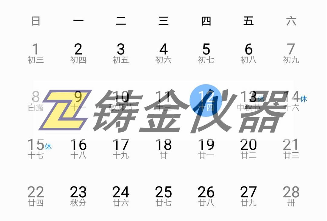上海鑄金分析儀器有限公司中秋節放假通知