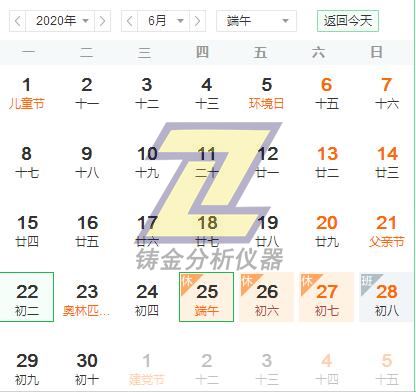上海鑄金分析儀器有限公司2020年端午節(jié)放假安排通知