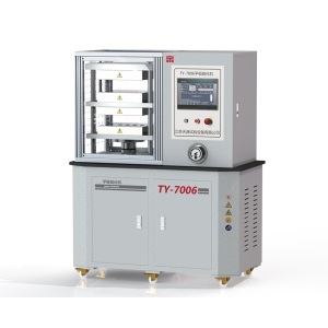 平板硫化機7006設備概述:本平板硫化機裝有PLC程式控制彩色觸摸屏【亦有常規LED數碼普通款】,人機界面操作系統,可設定壓力、溫度、時間、和排氣次數,硫化過程顯示及監控,所設模壓程式全自動完成,先進可靠。原料放于鑄模內,置于電熱平板,在額定溫度下施加壓力,使原料成型,以供試驗,做為工廠大量生產配料之依據。PLC款采用更為精準的線性調壓模塊,使輸出電壓與控制電壓(電流)成比例調節線性調節,升溫過程不再有超溫現象,使得溫度精度介于2℃,穩定后趨于0.3℃的精度,加熱裝置采用Y形結構(星形方式),徹底解決常規