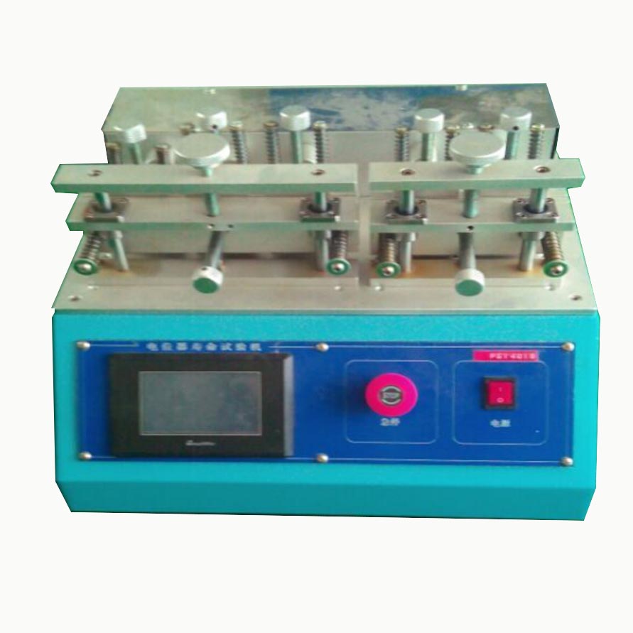 電位器旋轉(zhuǎn)壽命試驗(yàn)機(jī)產(chǎn)品概述:本機(jī)采用PLC觸摸屏加步進(jìn)電機(jī)控制,可對(duì)旋鈕電位器進(jìn)行壽命測(cè)試。機(jī)器可設(shè)定0-360度旋轉(zhuǎn),旋轉(zhuǎn)角度可調(diào)節(jié)(手動(dòng)調(diào)節(jié),帶數(shù)字輸入)。本機(jī)具有速度可調(diào)、轉(zhuǎn)角度可以設(shè)定,次數(shù)設(shè)定,并達(dá)到次數(shù)后數(shù)據(jù)保持停機(jī)。放置產(chǎn)品時(shí)要對(duì)電位器和機(jī)器旋轉(zhuǎn)角度原點(diǎn)(及0度位置)。電位器旋轉(zhuǎn)壽命試驗(yàn)機(jī)技術(shù)參數(shù):1.測(cè)試工位:5組(同步工作)2.電機(jī):86步進(jìn)電機(jī)加減速箱 3.控制方式:觸摸屏控制4.次數(shù):0~999999次(可設(shè)定)5.速度:3~30c.p.m可調(diào)6